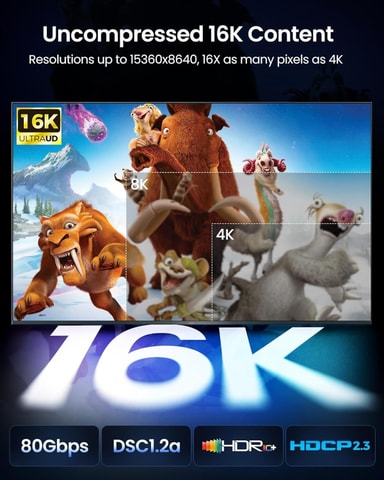 VESA-certifierad 2m DisplayPort 2.1 UHBR20-kabel som stödjer upp till 16K (15360x8460@60Hz). Kabeln har en bandbredd på upp till 80 Gbps och är bakåtkompatibel med DP 1.4 och 1.2. Stöd för Dynamic HDR, HDR10, HDCP 2.2, DSC 1.2a, FreeSync och G-Sync. Den stöder även 3D-grafik upp till 4K165Hz och 30bpp.Specifikationer: