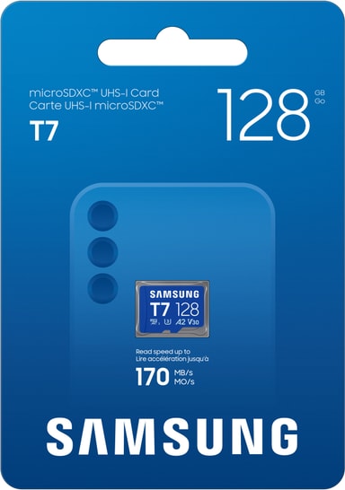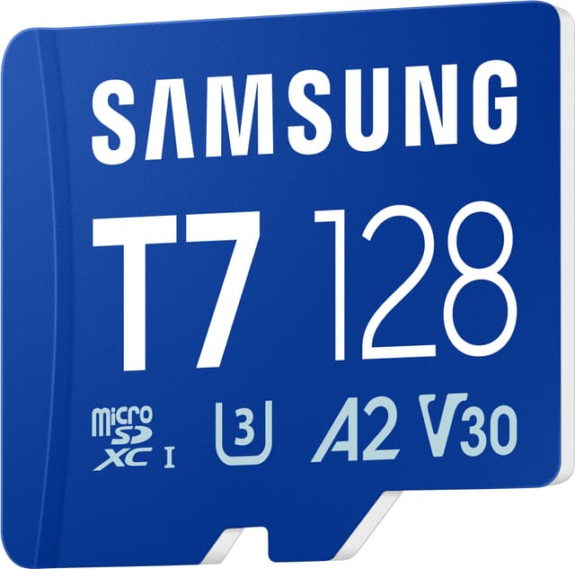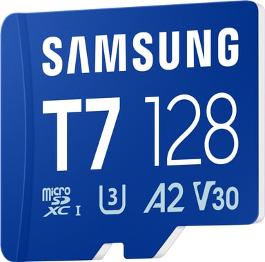 Samsung T7 micro SDXC-minneskort erbjuder 128GB lagring, smidig 4K UHD-inspelning, snabb 170MB/s läshastighet, A2-appprestanda och robust 6-proof hållbarhet för pålitlig tillförlitlighet.Läs mer om produkten