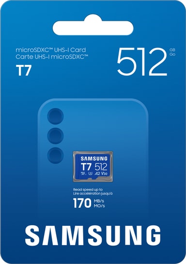 Samsung T7 micro SDXC-minneskort erbjuder 512 GB lagring, smidig 4K UHD-inspelning, snabb läshastighet på 170MB/s, A2-appprestanda och robust 6-proof hållbarhet för pålitlig tillförlitlighet.Läs mer om produkten