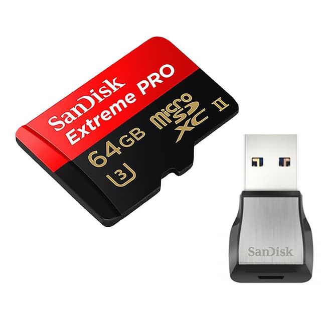• SanDisk Extreme Pro Micro SD kort 64 GB + kortläsare