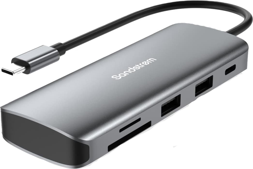Sandstrøm S7IN1CAR26E 7-i-1 minneskortläsare har en USB-C-hubb med 4K HDMI, dubbla USB-A 3.0, USB-C-dataport, dubbla SD/TF-kortplatser, 5Gbps-överföringar och 85W snabbladdning.Läs mer om produkten