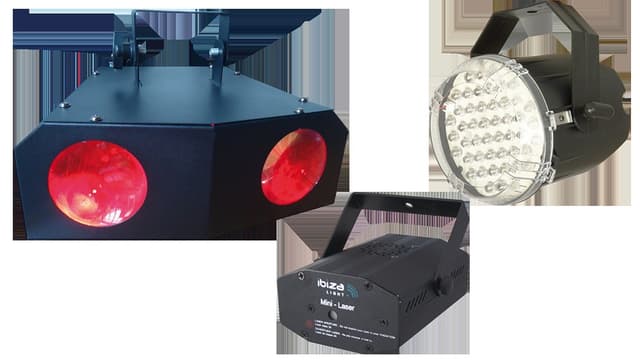 Tvåfärgad moon LED ljuseffekt 88x RGBW LEDs. Strobe justerbar flash-hastighet 10W med 50x vita LEDs. Firefly 55mW laser. Auto-run eller aktiverad via ljud. Läs mer om produkten