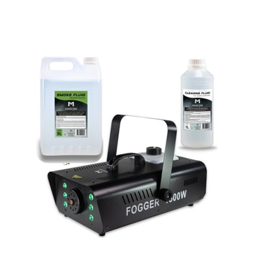 Produkten innehåller 1 1500W rökmaskin med LED, 1 5L rökvätska och 1 1L rengöringsvätska