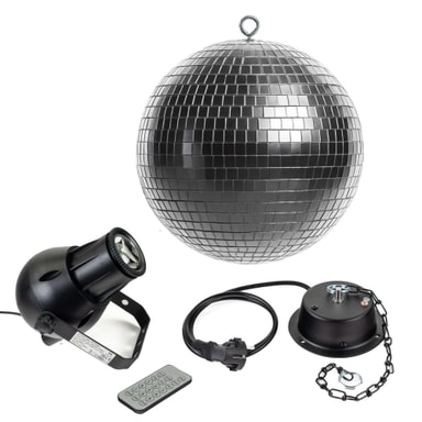 Set med en cool 30 cm discokula, motor samt en pinspot RGBW pinspot lyser i alla färger + vit Styrs enkelt med den medföljande fjärrkontrollenLäs mer om produkten