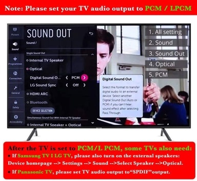 Output: Digital coaxial och Toslink, analog L/R och stereo 3,5mm