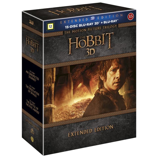 Samlingbox med alla filmer (förlängda versioner) av Hobbit-trilogin: En oväntad resa, Smaugs ödemark och Femhäraslaget.Läs mer om produkten