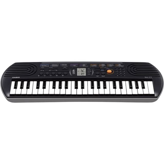 Casio SA-77 Keyboard SvartMelody-off funktion · In- och utgångar: hörlurar · 50 ackompanjemang · LCD · 5 drumpads · 2x 8 cm högtalare.Drumpads och piano-/tramporgelljudLäs mer om produkten