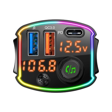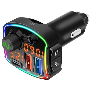 Trådlös praktisk FM-sändare till bilen: FM-sändare designad med Bluetooth 5.0, MP3, WMA, WAV och FLAC-C. Koppla sändaren till din radio eller smartphone trådlös eller med USB-kabel och njut av musik eller din favoritpod i bilen medan du kör. Svara i telefon handsfree genom knapp på displayen.
