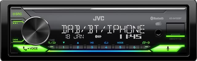 - Bluetooth, DAB/FM/AM, USB/AUX-ingång