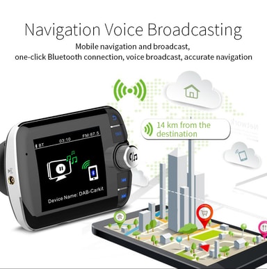 Multifunktionell Bluetooth-adapter för bilen: Denna bilradio-adapter kan avkoda, modulera och sända DAB-signaler (Digital Audio Broadcasting).