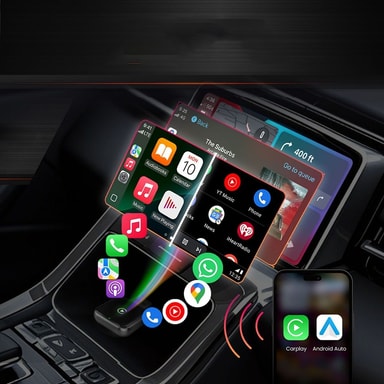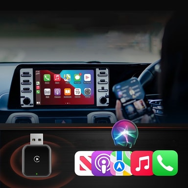 Röstassistentintegration: Aktivera din röstassistent enkelt med denna trådlösa CarPlay-adapter. Använd helt enkelt röstkommandon för att styra navigering, ringa samtal, spela musik och mer, allt utan att ta händerna från ratten. Adaptern integreras sömlöst med bilens befintliga röststyrningssystem, vilket möjliggör en handsfree-körupplevelse. Den här funktionen förbättrar säkerheten och bekvämligheten, så att du kan hålla fokus på vägen samtidigt som du får tillgång till dina favoritappar och -tjänster. Röstassistentintegrationen är kompatibel med Siri, vilket ger ett välbekant och intuitivt sätt att interagera med bilens infotainmentsystem. Kompatibel med APPLE-enheter.