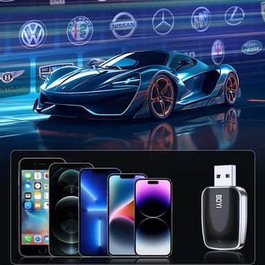 Sömlös trådlös anslutning: Njut av en verkligt trådlös CarPlay-upplevelse. Denna adapter konverterar omedelbart din bils trådbundna CarPlay-system till trådlöst, vilket eliminerar behovet av kablar. Anslut bara adaptern en gång, så ansluts den automatiskt till din iPhone varje gång du startar bilen. Streama musik, navigera och använd Siri handsfree med lätthet, vilket gör din körupplevelse säkrare och bekvämare. Inget mer fumlande med sladdar – bara sätt dig in och kör!