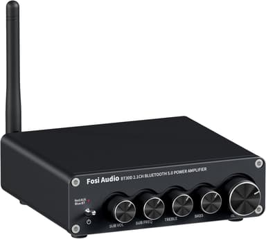 BT30D är en 2.1-kanals Bluetooth 5.0-förstärkare som kombinerar elegant design med kraftfull ljudprestanda. Med stöd för både Bluetooth och RCA-ingång kan den anslutas till de flesta passiva högtalare samt en passiv eller aktiv subwoofer, vilket gör den mångsidig för olika ljudsystem. För optimal ljudanpassning erbjuder förstärkaren justerbar SUB-volym, bas- och diskantkontroller, samt möjlighet att ställa in subwooferns delningsfrekvens mellan 20–200 Hz.