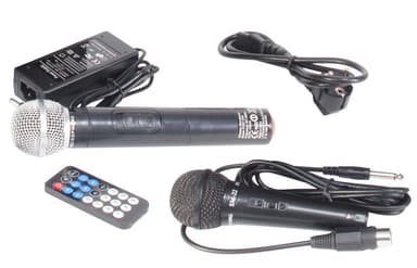 USB MP3 / WMA spelare.  1 x handhållen VHF-mikrofon (207,5 MHz).  Fjärrkontroll.  Bluetooth. Läs mer om produkten