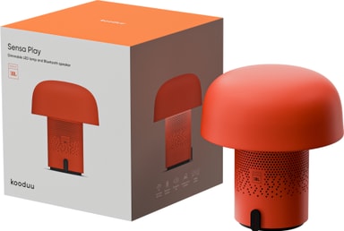 Kombinera värme, musik och design med den bärbara högtalaren Kooduu Sensa Play, en Bluetooth-högtalare och stämningslampa driven av SOUND by JBL. Denna svampformade lampa levererar 360° rumsuppfyllande ljud med djup bas och klara höga toner samtidigt som den sprider ett mjukt, dimbart sken som förvandlar ditt hem, din terrass eller trädgård till en avkopplande oas.
