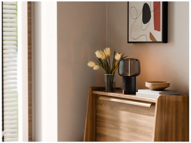 Kombinera värme, musik och design med den bärbara högtalaren Kooduu Serena Play, en Bluetooth-högtalare och stämningslampa med SOUND by JBL. Denna svampformade lampa levererar 360° rumsuppfyllande ljud med djup bas och klara höga toner samtidigt som den sprider ett mjukt, dimbart sken som förvandlar ditt hem, din terrass eller trädgård till en avkopplande oas.