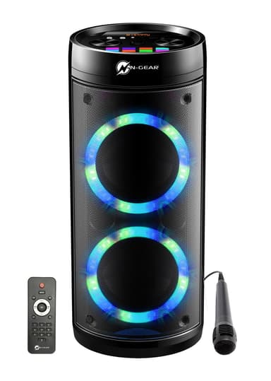 Andra funktioner: RMS Power 40W Högtalarstorlek +impedans 6,5 S/N -förhållande ≥80dB USB MP3 MicroSD/TF MP3 Effektingång DC 9V/1,5A 2 x MIC IN Powerbank -funktion MP3 -uppspelning via usb Max 32GB MP3 -uppspelning via MicroSD Max 32GB RGB Disco led -belysning Kabelmikrofon ingår Ljudingång / AUX IN