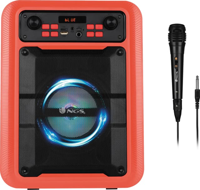 Kom i feststämning och njut av utmärkt ljud med NGR bärbar högtalare Roller Lingo, med LED-belysning, 7 timmars batteritid, flera anslutningsmöjligheter och inbyggd mikrofoningång för karaoke-sessioner.Läs mer om produkten