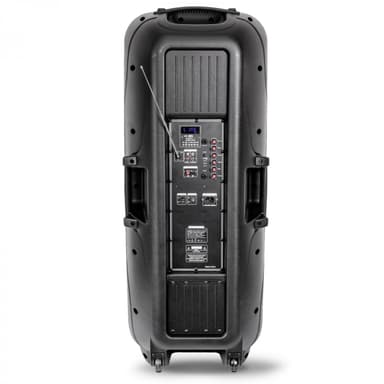 2x trådlösa mikrofoner.  USB, Bluetooth och SD-kortspelare.  FM radio.  AUX-ingång via RCA.  Mikrofoningång.  Gitarringång.  Bas- och diskantkontroll.  Uppladdningsbart batteri 7,2Ah. Läs mer om produkten