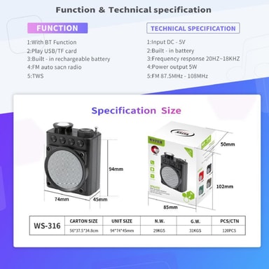 Mångsidig funktionalitet: Njut av en mängd funktioner med denna mångsidiga Bluetooth-högtalare. Utöver trådlös Bluetooth-anslutning stöder den även FM-radio, TF-kortuppspelning och röstpromptfunktion. Den inbyggda FM-radion låter dig ställa in dina favoritstationer, medan TF-kortplatsen ger ett alternativt sätt att spela upp ditt musikbibliotek. Röstpromptfunktionen erbjuder bekväm handsfree-drift, vilket gör det enkelt att styra din musik och svara på samtal. Denna allt-i-ett-högtalare är designad för att tillgodose olika ljudbehov, vilket säkerställer att du alltid är underhållen, oavsett om du är hemma, på kontoret eller på resande fot. Upplev den ultimata bekvämligheten och flexibiliteten med denna funktionsrika Bluetooth-högtalare.