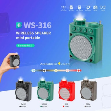 Mångsidig funktionalitet: Njut av en mängd funktioner med denna mångsidiga Bluetooth-högtalare. Utöver trådlös Bluetooth-anslutning stöder den även FM-radio, TF-kortuppspelning och röstpromptfunktion. Den inbyggda FM-radion låter dig ställa in dina favoritstationer, medan TF-kortplatsen ger ett alternativt sätt att spela upp ditt musikbibliotek. Röstpromptfunktionen erbjuder bekväm handsfree-drift, vilket gör det enkelt att styra din musik och svara på samtal. Denna allt-i-ett-högtalare är designad för att tillgodose olika ljudbehov, vilket säkerställer att du alltid är underhållen, oavsett om du är hemma, på kontoret eller på resande fot. Upplev den ultimata bekvämligheten och flexibiliteten med denna funktionsrika Bluetooth-högtalare.