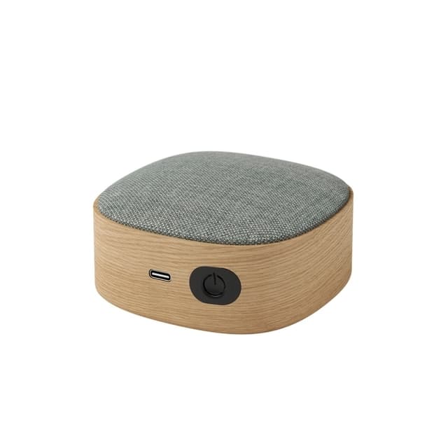 SACKit Go Wood-högtalaren kombinerar en elegant träram i rökt ek med vacker textil från danska KVADRAT, vilket gör att den skiljer sig från andra högtalare på marknaden. Denna kompakta högtalare levererar ett exceptionellt ljud för sin storlek och erbjuder den ultimata friheten med trådlös laddning och uppspelning.