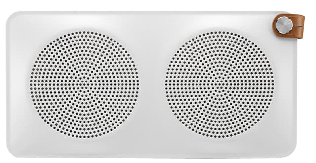 Läcker trådlös högtalare med Bluetooth, design i läder och tålig mot smuts. Stänk- och dammtålig, vilket gör den utmärkt att ha med sig utomhus eller i köket.Läs mer om produkten