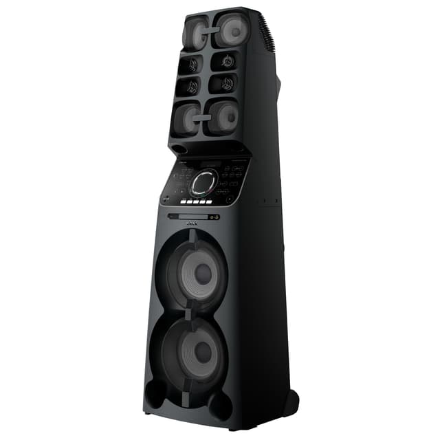 MHC-V90DWs högtalare har lång räckvidd, kraftfull bas och klar diskant. Med en höjd på 170 cm har var och en av dem en hornformad design som trycker ljudet längre än du kunnat ana. Spridningsgeneratorn distribuerar musiken i vidvinkel så du kan vara säker att alla hör den tydligt även i stora utrymmen.