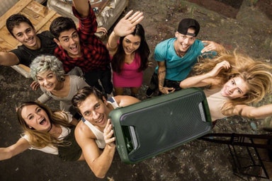 Skapa festivalatmosfär på dina fester med kraftfull musik med one-box-systemet Hemmaljudanläggning med Bluetooth GTK-XB5, som inte bara spelar musik, men också skapar ljuseffekter. Hemmaljudanläggningen rymmer stor kraft i en kompakt design och kan både stå och ligga, för stor flexibilitet vad gäller placering. Handtag och lättviktig design gör det enklare att flytta den runt så att du kan hålla festen levande oavsett i vilket rum ni befinner er i, eller efter stängning.