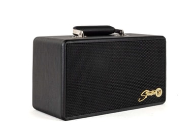 Högtalaren imponerar inte bara med sitt ljud utan även med sin minimalistiska retrodesign. Kombinationen av funktionalitet och estetik gör att den eleganta svarta ytan ser snygg ut både på en hylla hemma och som en lätt bärbar lösning.