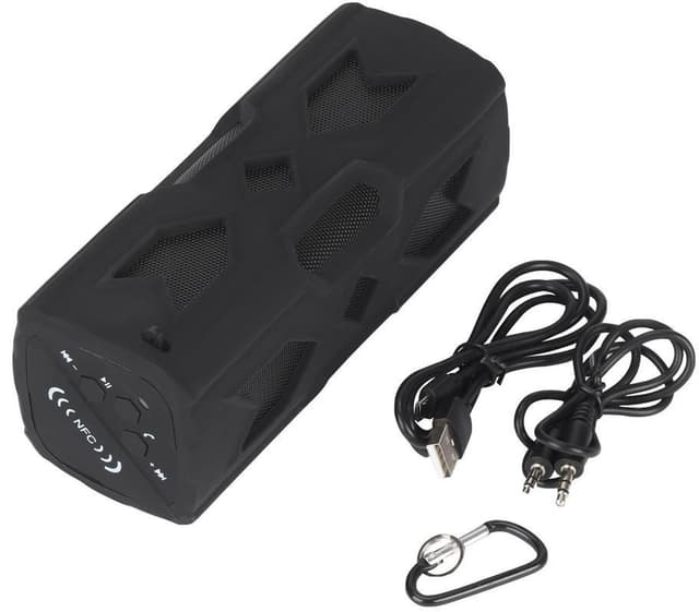 Trådlös Bluetooth V4.0 + EDR-högtalare, vattentät, stötsäker och dammsäker. Högtalaren har en liten och smidig storlek som gör den enkel att ta med sig överallt. Högalaren har ett högt och tydlig ljudutgång och en inbyggd mikrofon som tillåter dig att svara på samtal medan du lyssnar på musik.