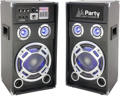 Aktivt högtalarset. Inbyggt LED-ljus. Mixer med equalizer och delay. Spela musik via USB, SD kort eller Bluetooth. Läs mer om produkten