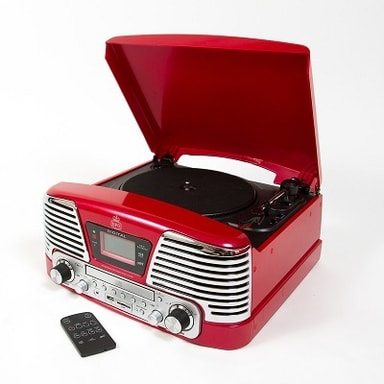 GPO Memphis - Röd Smart system i stilren retrodesign med inbyggda högtalare, skivspelare, CD, USB, SD-kort och FM-radio, så att du kan spela din musiksamling på ett ställe. Kan spela skivor med 33, 45 och 78 rpm (varv per minut). Spela in alla dina vinyl eller CD-skivor på en USB-nyckel eller SD-kort. Inbyggd CD-spelare. Inbyggda dubbla stereohögtalare med 2 x 1,5 watt uteffekt (3 watt totalt). Inbyggd förstärkare. Autostoppfunktion. Levereras med extra pickupnål. FM-radio med digital LCD-skärm. Bass Boost funktion. Fjärrkontroll ingår. 3,5 mm uttag för anslutning av MP3-spelare och smartphones (anslutningssladd ingår). Kompatibel med externa högtalare, inklusive GPO Westwood och GPO Westwood Mini . Vikt: 3,4 kg. Mått: B 38 x D 37 x H 17,5 cm. Finns i svart och rött.