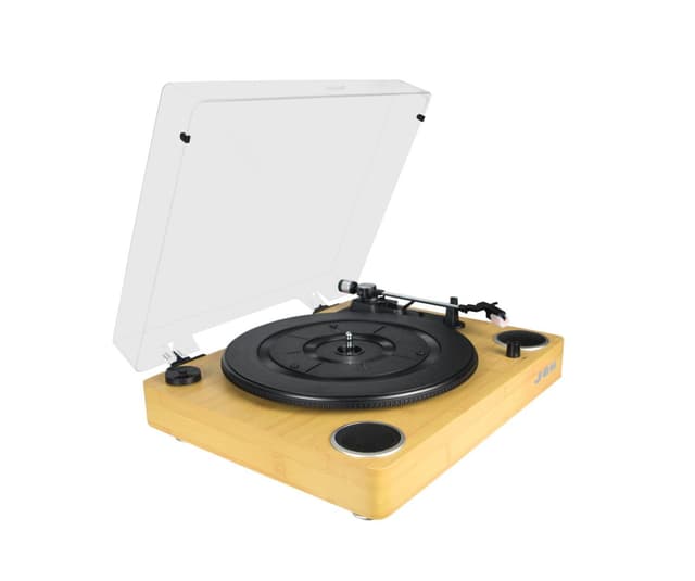 Andra funktioner: Denna skivspelare är utrustad med RCA -utgång som låter dig växa festen till en extern högtalare. Systemet erbjuder också en aux-in som ger dig möjlighet att spela musik via andra enheter och 3 olika hastigheter som är lämpliga för 33 ¹/₃, 45, 78 RPM-poster. Med ett dammskydd för att skydda din JAM Sound Skivspelare kommer den säkert att inta en permanent plats i ditt hem!