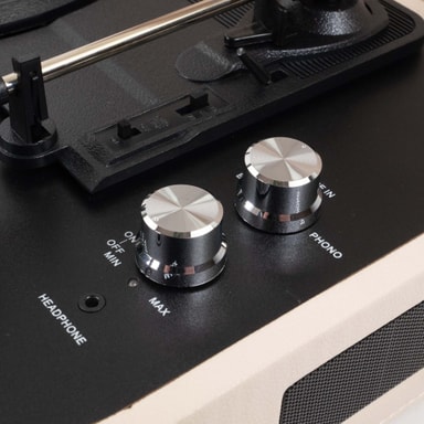 Detta bundle består av 1 Studio 57 Mellow Skivspelare (Vit), Studio 57 Vinylhållare för 12"" Skivor & 1 Rengöringsset för Vinylskivor med borste i askträ.
