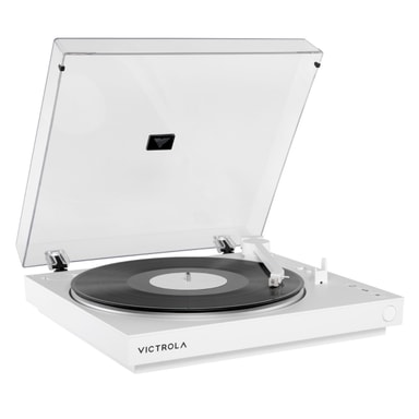 Victrola VPT-800 är en stilren, helautomatisk skivspelare för enkel användning och oavbruten musik. Den spelar både 33 1/3 och 45 RPM och har en upprepningsfunktion. VinylStream™ Bluetooth gör det möjligt att ansluta trådlöst till högtalare eller hörlurar. Inbyggd phono-förförstärkare och RCA-utgång ger fler anslutningsmöjligheter. Ljudet levereras med hög precision från Audio-Technica AT-3600L pickup. Snygg design med avtagbart dammskydd. Specifikationer: • Utgångar: RCA (växlingsbar förförstärkare), VinylStream™ (Bluetooth) • Hastigheter: 33 1/3, 45 RPM • Pickup: Audio-Technica AT-3600L • Drift: Remdriven, helautomatisk med upprepning • Skivtallrik: Pressgjuten aluminium • Mått: 38,0 x 35,0 x 10,2 cm • Vikt: 2,7 kg