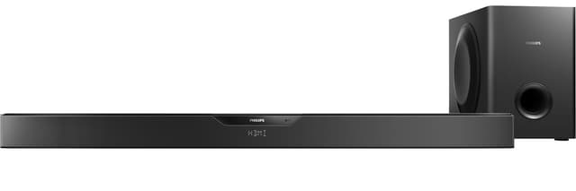 Philips 2.1 är en soundbar som imponerar med sitt kraftfulla ljud och superplatta och trådlösa design.Läs mer om produkten