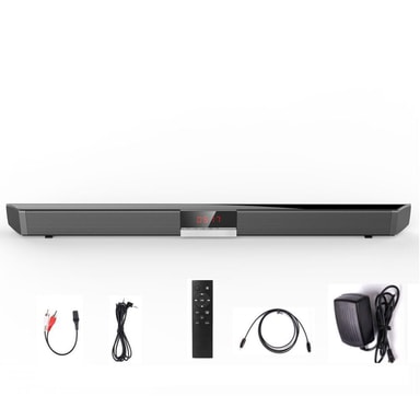 Anta högkvalitativt svart skal design, produkten äger ett kort smidigt utseende. LED-skärm i mitten av soundbaren visar en känsla av avancerad och stilren och det visar tydligt det aktuella arbetsförhållandet