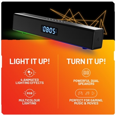 STEALTH LED Light-Up Rechargeable, Portable Soundbar for Gaming, Music and MoviesThe LED Light-Up SoundBar is a rechargeable wireless, portable speaker that's perfect for more immersive gaming, music and movie watching.