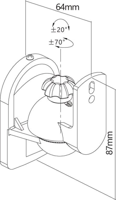 Det kompakta väggfästet ger högtalaren full flexibilitet i alla riktningar och ett absolut säkert grepp