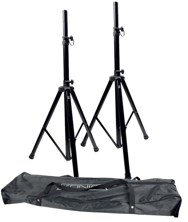 Kit med högtalarstativ som passar högtalarna PA-SMA1202 och PA-SMA1502 från König. Få två lättviktiga stativ i aluminium och en praktisk påse för förvaring och frakt.
