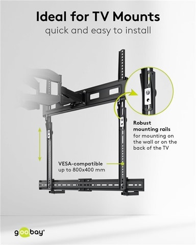 Den robusta monteringsskenan kan skruvas fast i väggen eller fästas direkt på TV:ns baksida (VESA®-kompatibel upp till 800x400 mm)