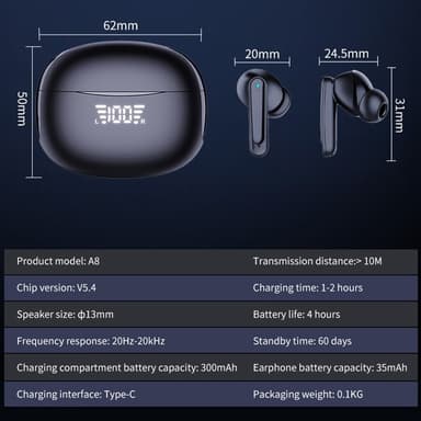 A8 Smart Voice-översättningshörlurar 150 språk onlineöversättare Bluetooth-kompatibla in ear-hörlurar