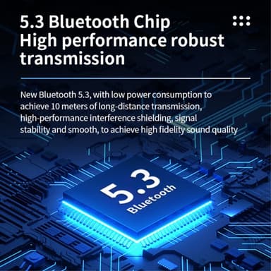 5.3 Bluetooth-chip högpresterande robust överföring: Ny Bluetooth 5.3, med låg strömförbrukning för att uppnå 10 m långdistansöverföring, högpresterande interferensskärmning, signalstabilitet och jämnhet, för att uppnå högtroget ljudkvalitet