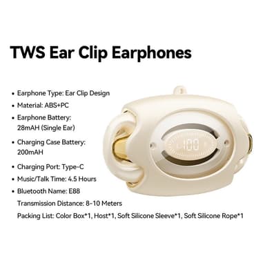 ESSAGER Bluetooth Öronklämma Stereo hörlurar Svetttålig musikspelheadset - Beige