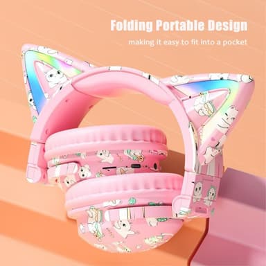 Graffiti RGB Cat Ear Bluetooth Headset Avtagbar mikrofon Stereo Music Trådlösa hörlurar - Rosa