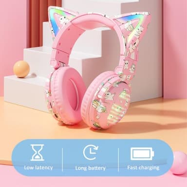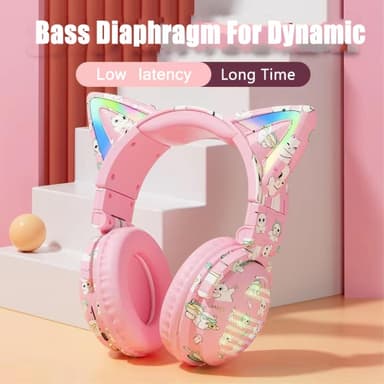Graffiti RGB Cat Ear Bluetooth Headset Avtagbar mikrofon Stereo Music Trådlösa hörlurar - Svart