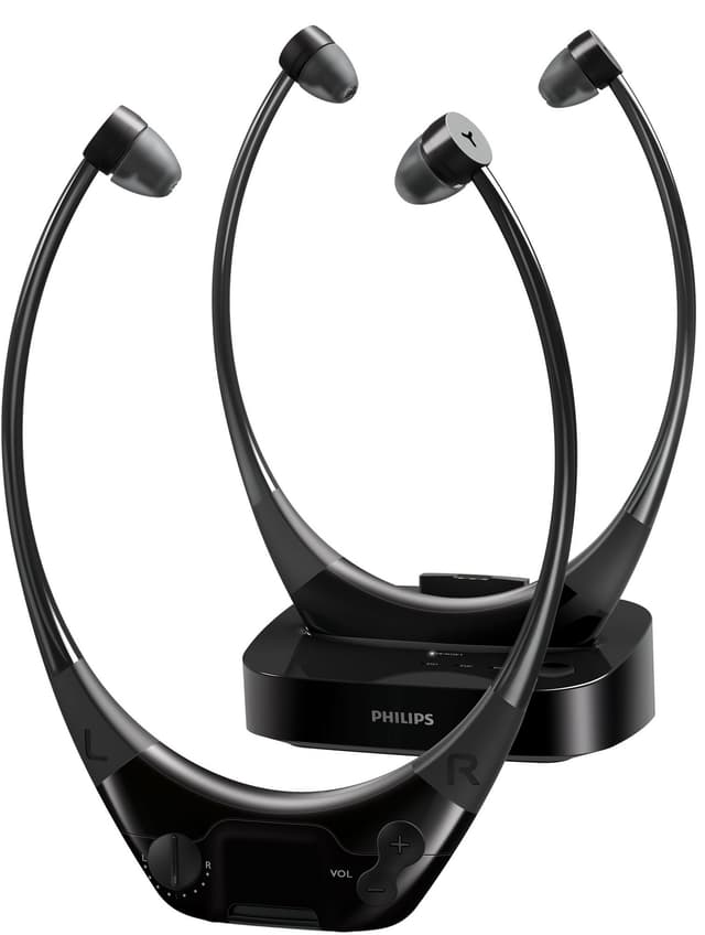 • Philips trådlösa AudioBoost TV Hörlurar in-ear (tvåpack