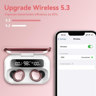 Q26 TWS Bluetooth-kompatibla headset Digital Display In-Ear trådlösa hörlurar med Power Bank-funktion - Rosa