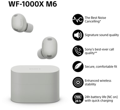 - Sony WF-1000XM6 true wireless-hörlurar (platinsilver)